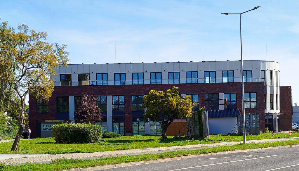 The building complex is located on Wojska Polskiego Street in Bydgoszcz (administratively ul. Adama Grzymały Siedleckiego 14), which leads to the city center on one side and to the Bydgoszcz Industrial and Technological Park on the other. It is adjacent to a tram and bus stop, in the heart of the Wyżyny housing estate, close to Śródmieście.